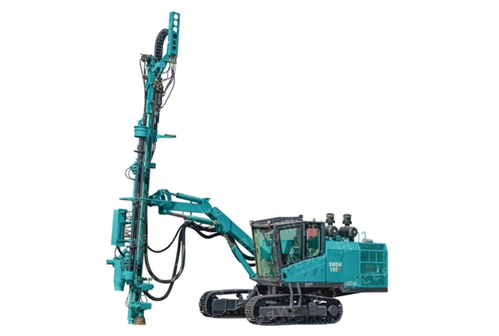 Гидравлический буровой станок с выносным перфоратором SWDH102S спроектирован в соответствии с условиями эксплуатации открытых карьеров малого и среднего размера и небольших открытых шахт. Используется для бурения твердых и среднетвёрдых (F10 и выше) горных пород. Может использоваться для взрывных работ и бурения горных пород на участках добычи полезных ископаемых, в проектах наземного строительства, дорожных проектах, открытых шахтах, строительстве гидроэлектростанций и т.д. Станок оснащён высокоэффективным гидравлическим буром, который отличается высокой скоростью бурения, низким энергопотреблением и маневренностью при бурении горных пород. Общие характеристики